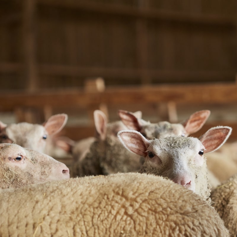 Moutons : Nos moutons de race Charmoise nous offrent une laine fine, douce et moelleuse, tondue une fois par an.
