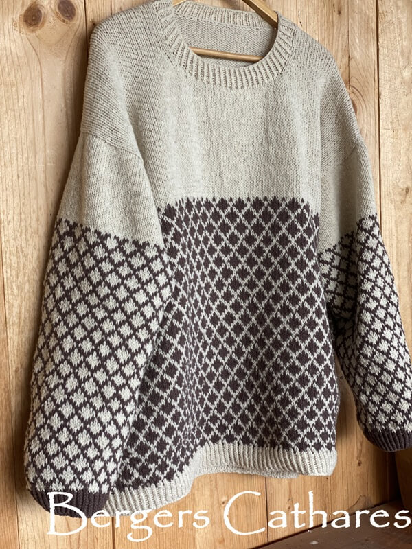 Dans notre ferme, il y a aussi des moutons, élevés en plein air dans nos collines au pied des Pyrénées. Leur laine est douce et moelleuse, elle est lavée, filée et teintée en France. La laine est formidable pour isoler du froid tout en évacuant l’humidité du corps.