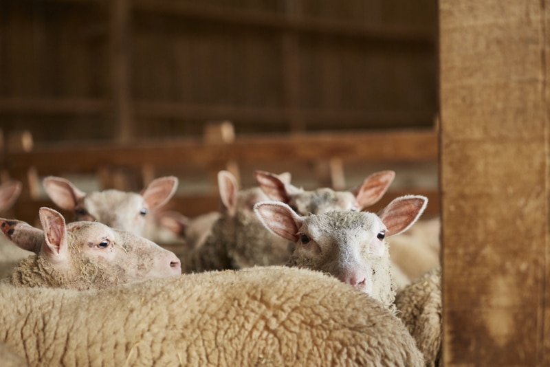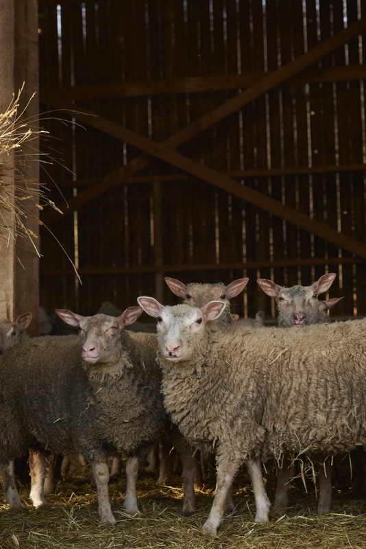 Notre troupeau de mouton est issu d’un croisement de deux races : Charmois et Charollais. La Charmoise est une race de plein air, assez petite et rustique qui produit une belle toison longue et blanche. Le Charollais redonne un peu de gabarit et améliore les qualités bouchères. Les deux races sont remarquables car leurs toisons sont très fines (classées après le mérinos) et n’ont pas de jarre (gros poil dur piquant). Depuis peu, nous introduisons des béliers Mérinos pour rendre la laine encore plus douce.
