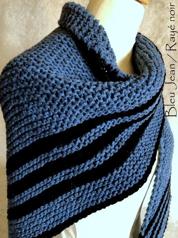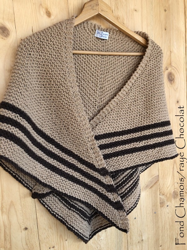 Tricoté tout au point mousse, sa technique de tricotages est facile, mais bien particulière. A porter fermé par une épingle à châle >>
