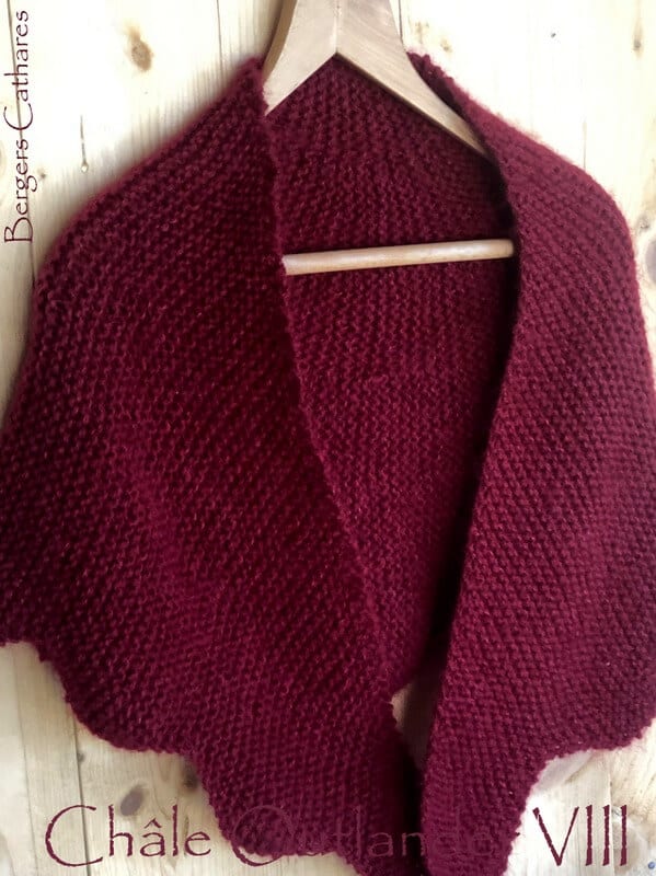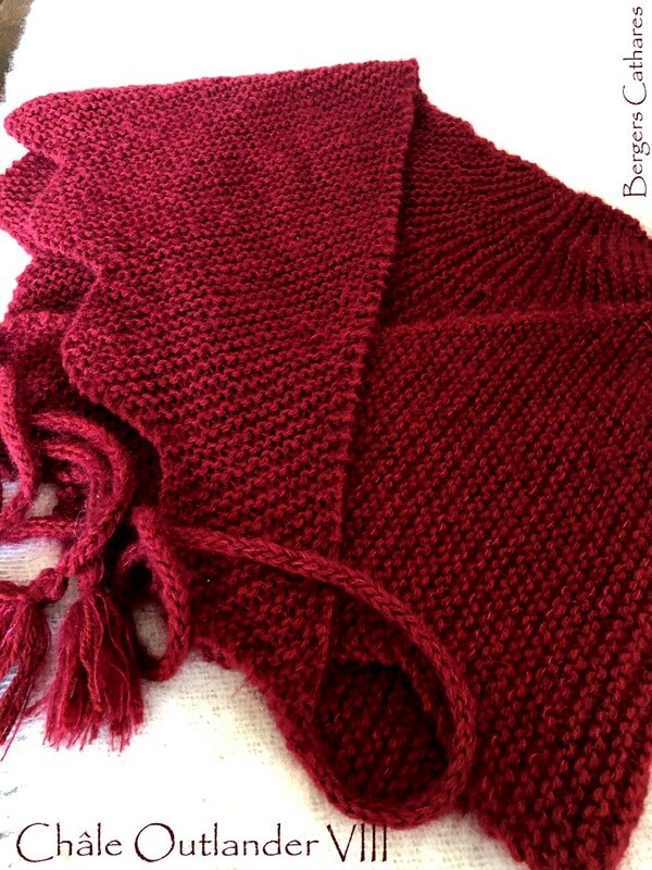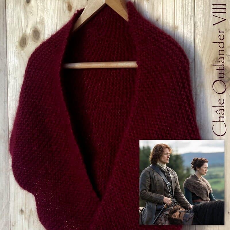Ce châle, porté par Brianna dans la célébrissime série téléfixée Outlander, est un modèle qui peut se porter croisé devant ou en écharpe. Il est attaché dans le dos par une cordelette à pampille. Sa bordure forme une série de vagues. D’après toutes les photos et le film, nous l’avons mis en aiguille pour le rendre le plus proche de la réalité.