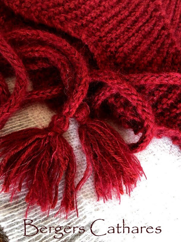 Il est tricoté dans un mélange de laine de nos moutons et de mohair de nos chèvres : produit en Ariège (France)