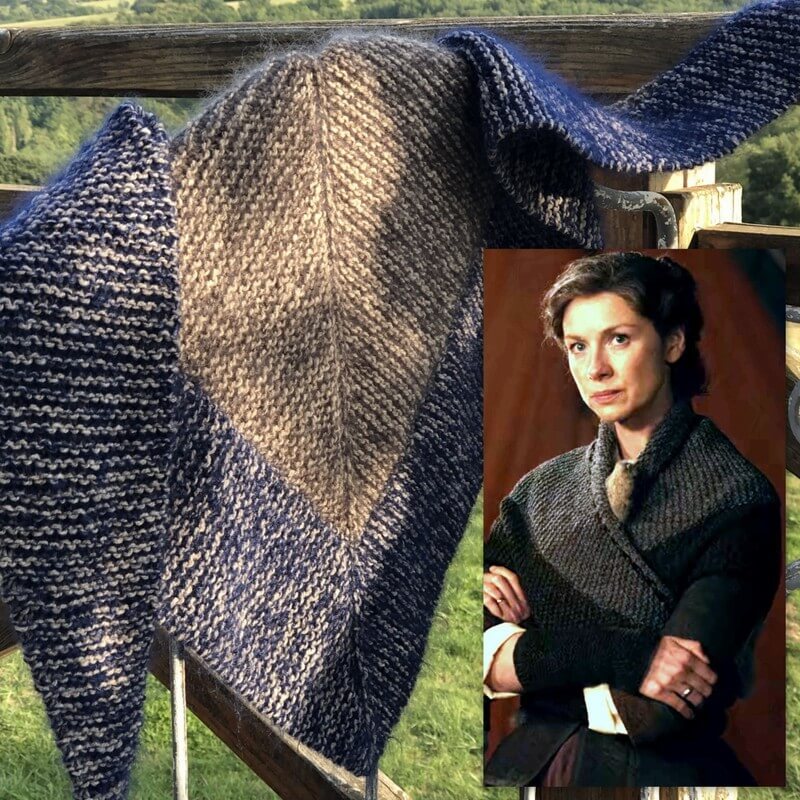 Châle Outlander de la saison 5 : il a été créé à partir du châle porté par « Claire » dans la célèbre série « Outlander » qui se passe en Ecosse. Nous avons choisi de tricoter celui-ci en laine de nos moutons mélangé à du mohair de nos chèvres.