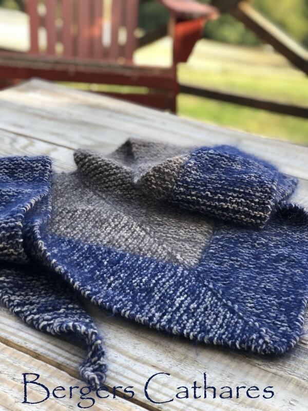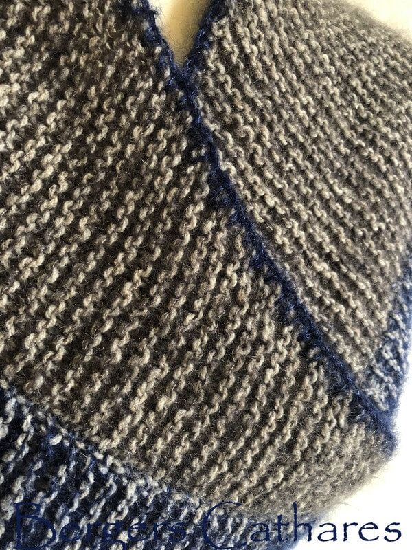 Les laines écossaises sont tout à fait semblables à celle produite par nos moutons sur notre ferme, c’est pour cela que j’ai eu envie de reproduire ce châle, bien épais et chaud.