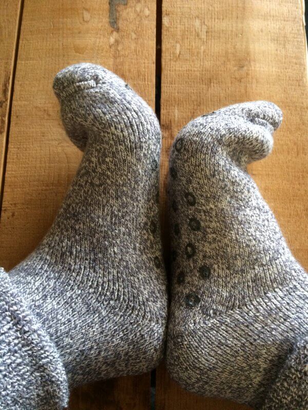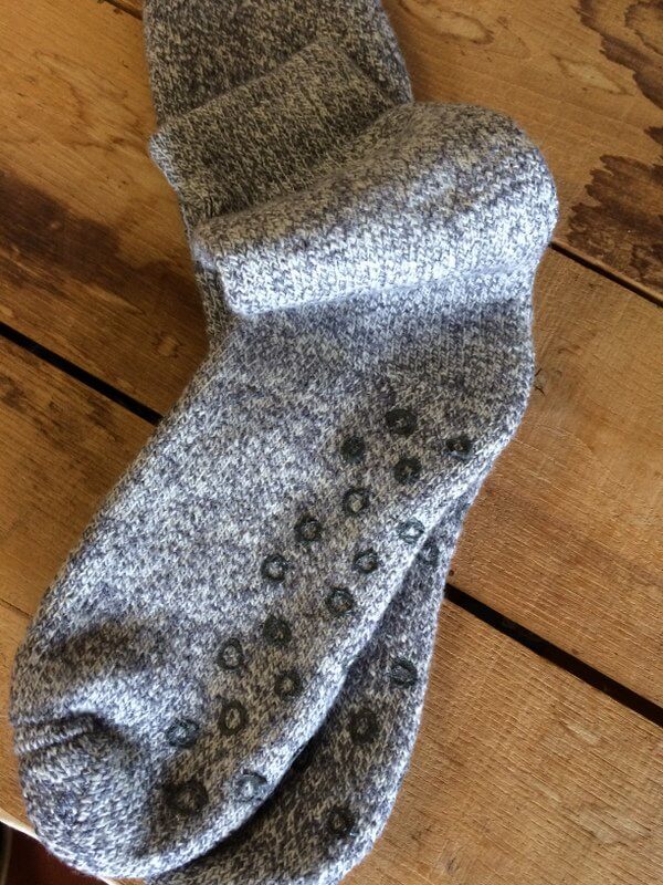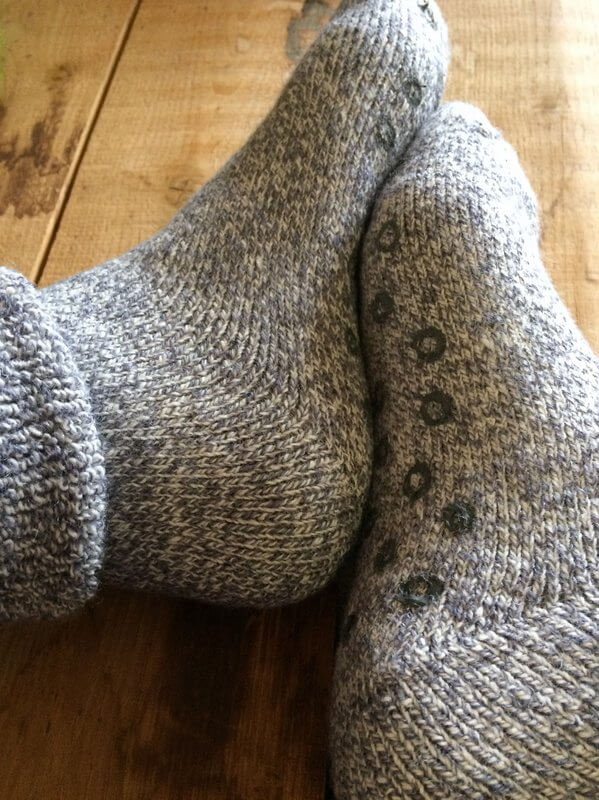 Intérieur de la chaussette (gris-chiné) en bouclette de mohair qui isole et assure un moelleux sans pareil !