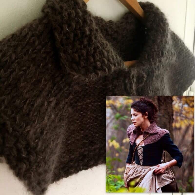 Le capelet porté par Claire dans la célébrissime série Outlander (saison 1). Nous l’avons mis en aiguille et tricoté avec la pure laine Nature de nos moutons mélangé au fil Précieuse (Mohair super kid et soie). Il vient se poser sur les épaules et vous réchauffera immédiatement. Encore un magnifique modèle imaginé pour la série Outlander que nous n’avons pas laissé passé !
