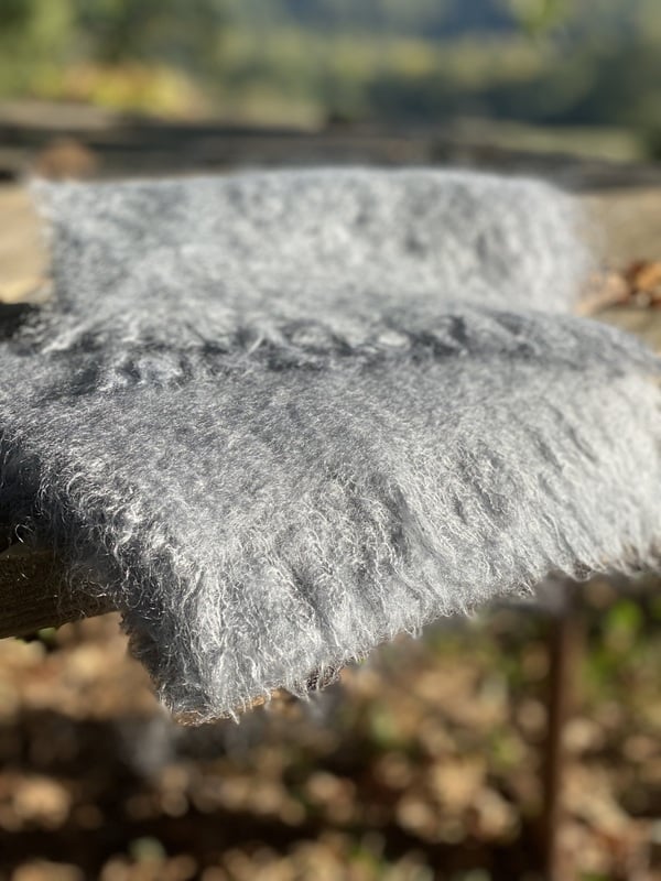 A savoir : Le mohair est très sensible à la lessive : trop de lessive ou une lessive trop puissante peut le feutrer, c’est sa seule fragilité. Eucalan est pour cela très bien car aucun risque de feutrage. Ne jamais utiliser de savon de Marseille pour le mohair et à éviter pour la laine : c’est naturel mais agressif (feutrage garanti pour le mohair).