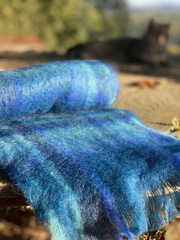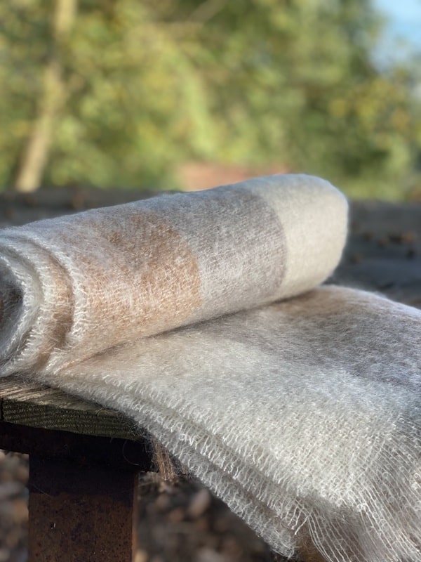 Mais malgré son défaut, jamais vous ne risquez un fil qui s’effiloche, car les écharpes sont grattées pour faire sortir le poil après le tissage et cela maintient tout bien fermement