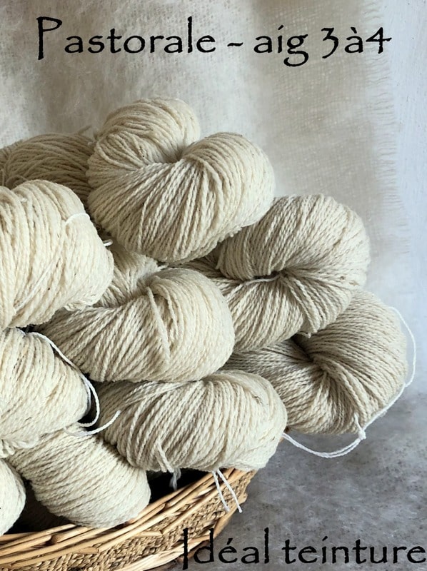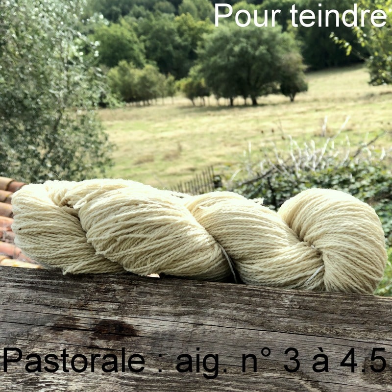 Naturelle et idéale pour le teinture, elle est brute et non dégraissée, mais elle peut très bien être tricotée comme ça et lavée une première fois avant de la porter, c’est quand même de la laine qui a été lavée !!