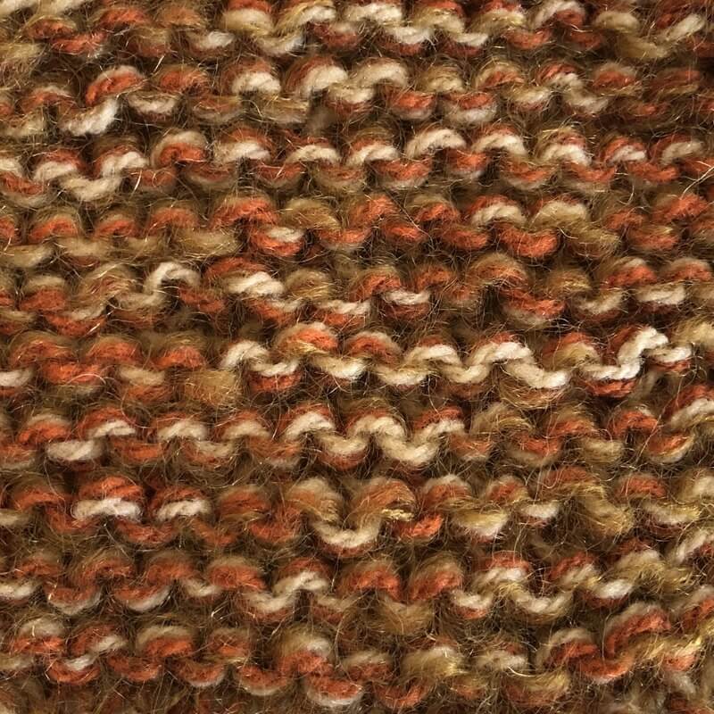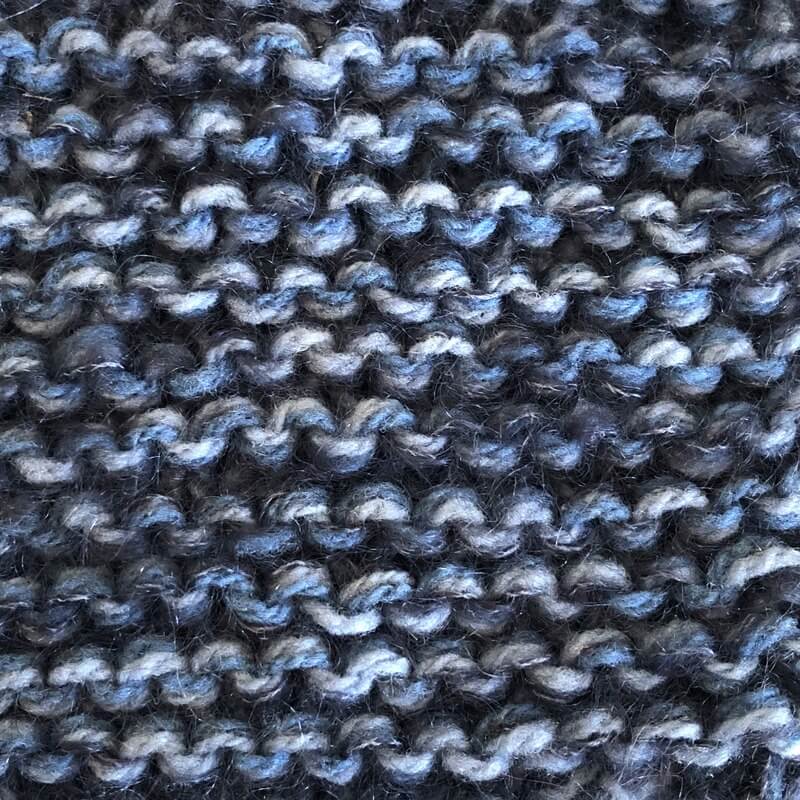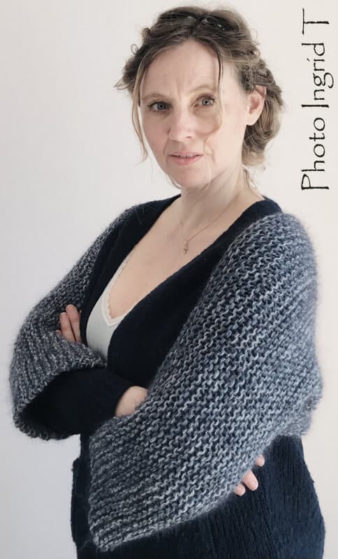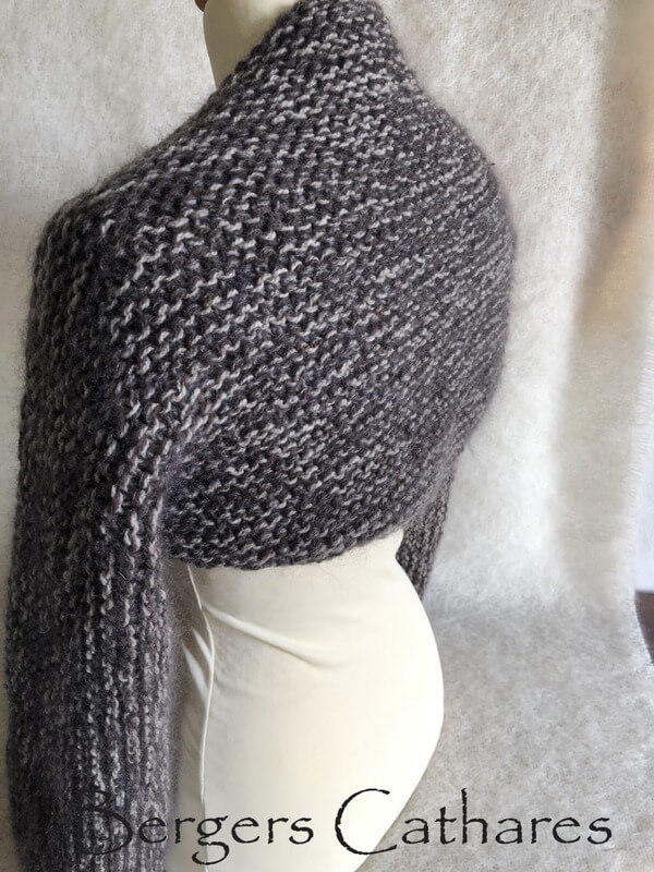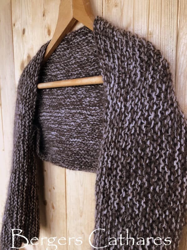 Se tricote avec 3 fils : 2 fils de laine + 1 fil mohair au point mousse