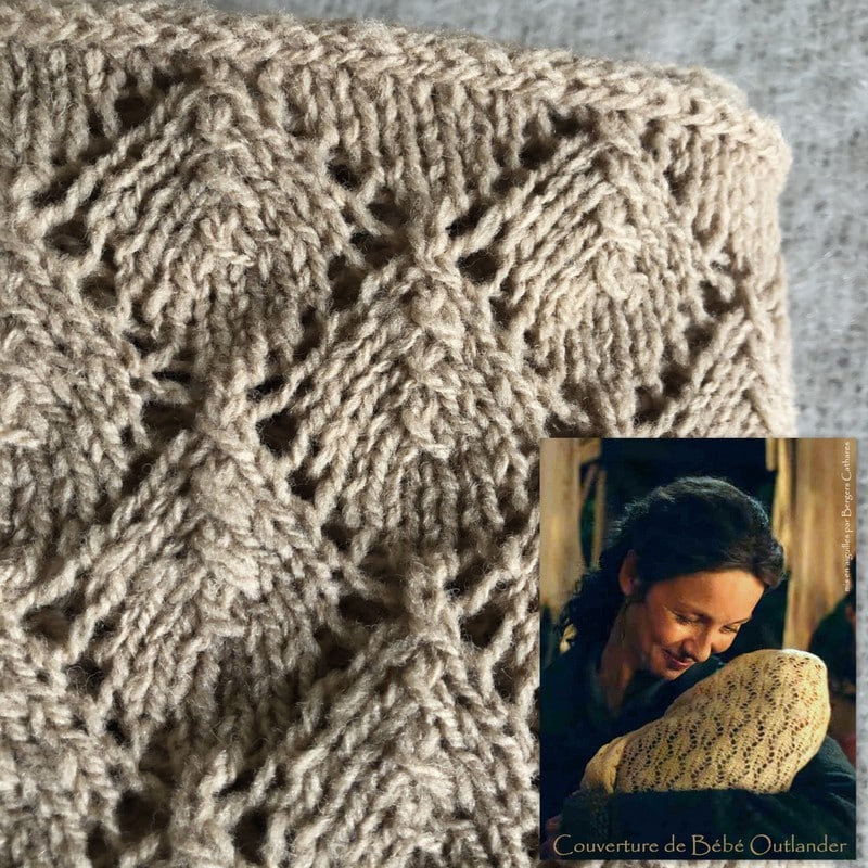 C’est à partir de la célébrissime série Outlander que j’ai mis en aiguille ce modèle de couverture bébé. La bordure de la couverture est une Icord, une jolie finition qui ressemble à un tricotin, et une technique intéressante pour les tricoteurs(ses).