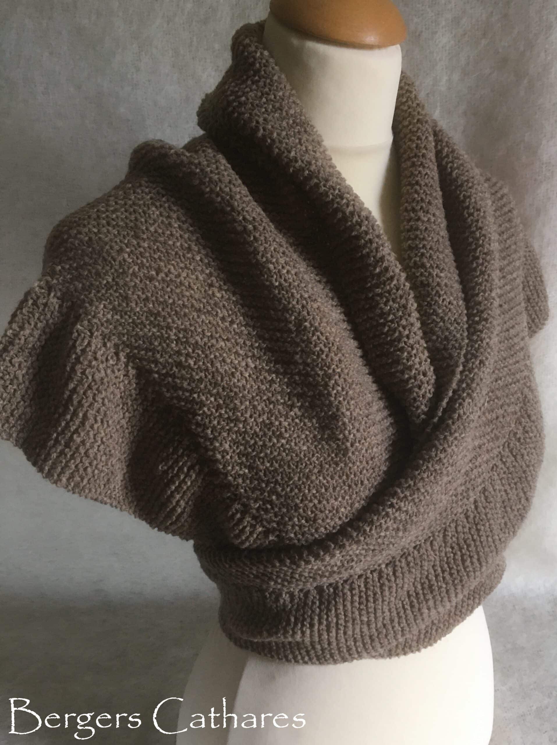 C’est exactement ce que je recherchais: un châle joli, facile à porter en toute circonstance, bien chaud… C’est une immense satisfaction d’avoir pu le tricoter moi-même. Les instructions sont claires et le modèle est tout à fait abordable pour les débutant·e.s, à condition d’avoir un peu de patience: il faut tout de même tricoter 6 ou 8 pelotes. La texture un peu « sèche » du fil estive m’a surprise, mais cela reste agréable à porter et la couleur bleu jean est magnifique. Je suis ravie de ce projet.