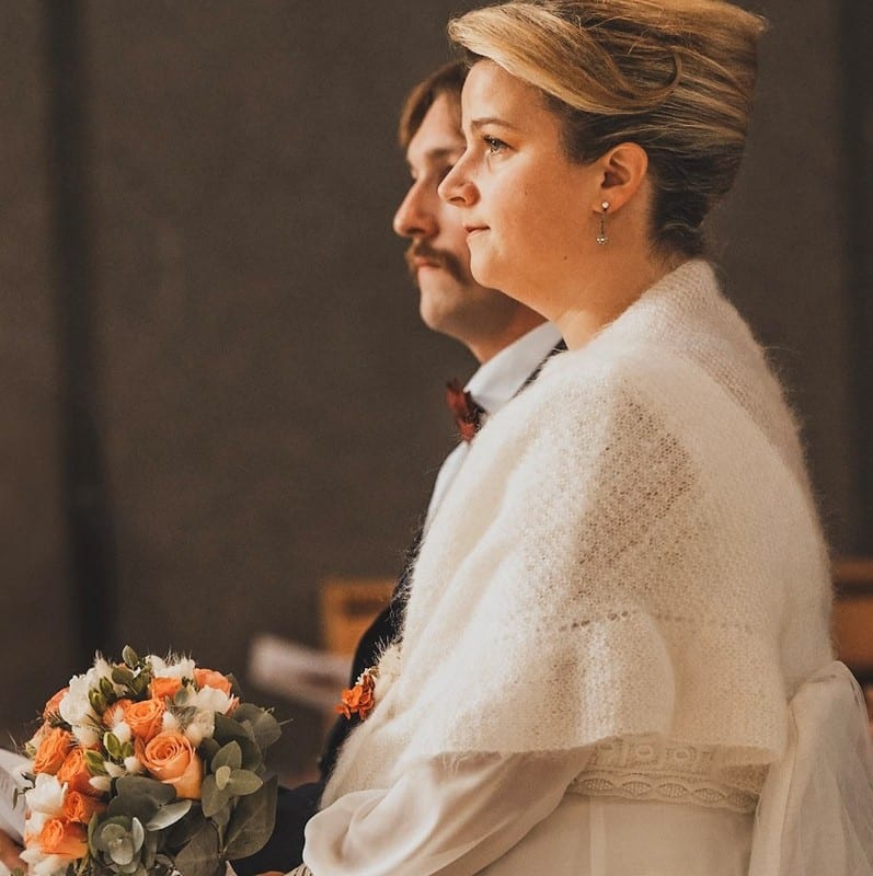 Ce châle est magnifique. Tellement léger et chaud. Bravo Véronique ! Ma fille va le mettre pour son mariage au-dessus de sa robe de mariée.