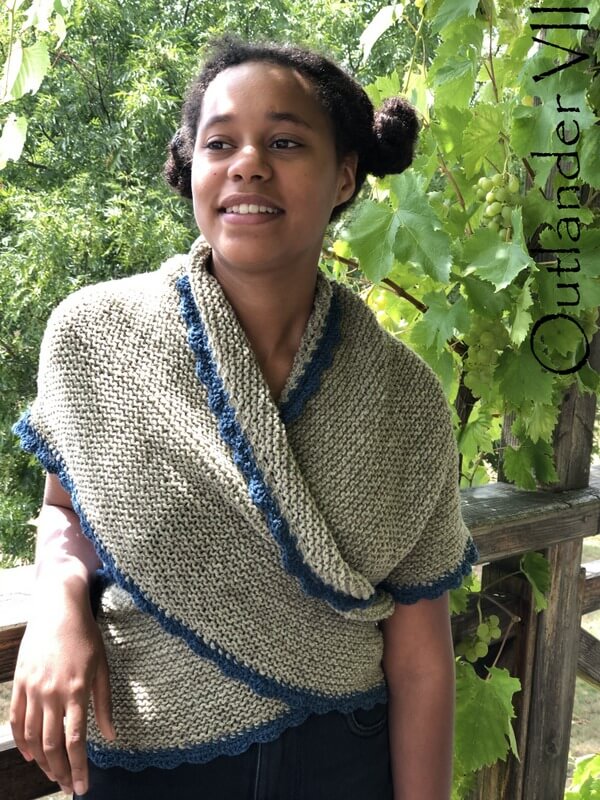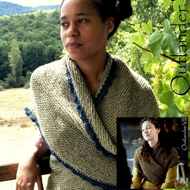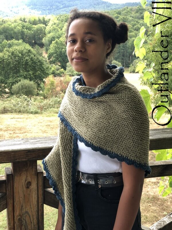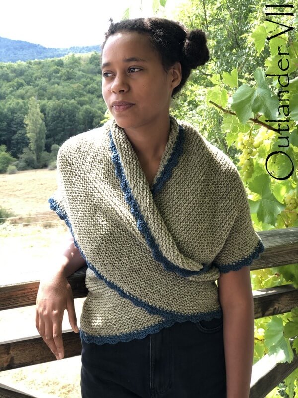 Ce châle, porté par Claire dans la célébrissime série télé Outlander (saison 5), est un modèle classique qui se porte noué dans le dos ou en écharpe. D’après toutes les photos et le film, nous l’avons mis en aiguille pour le rendre le plus proche de la réalité.