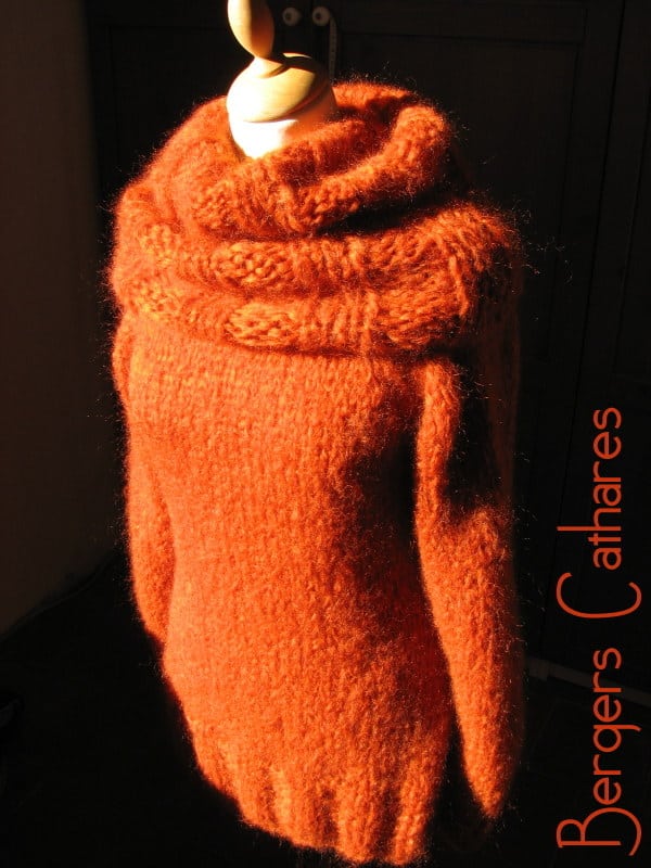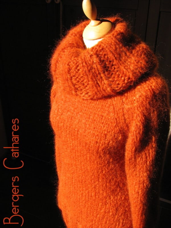 – tricoté « à plat » : méthode traditionnelle où l’on tricote en 4 pièces (de bas en haut) que l’on assemble ensuite.