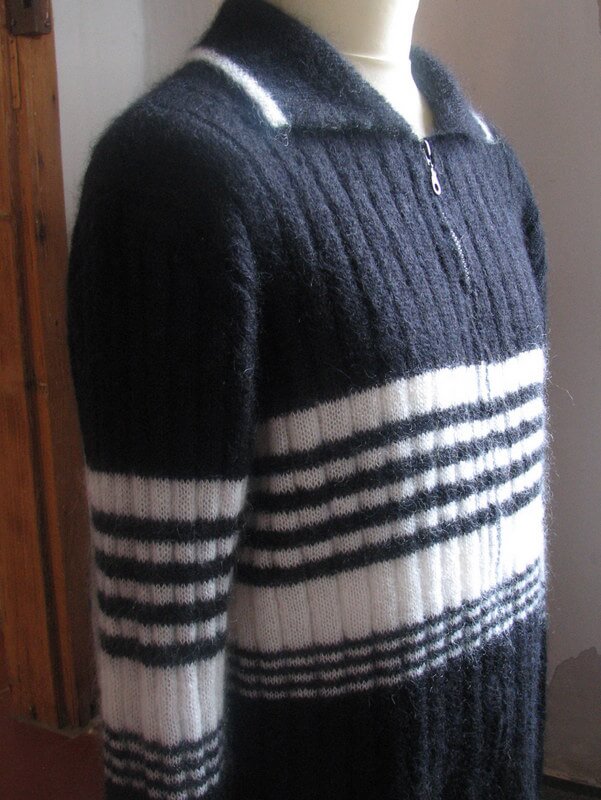 Le mohair/soie qui la compose est d’une haute qualité, il est extra doux. Il a été produit par nos chèvres en Ariège et trié à la main pour que le plus doux soit sélectionné dans cette veste.